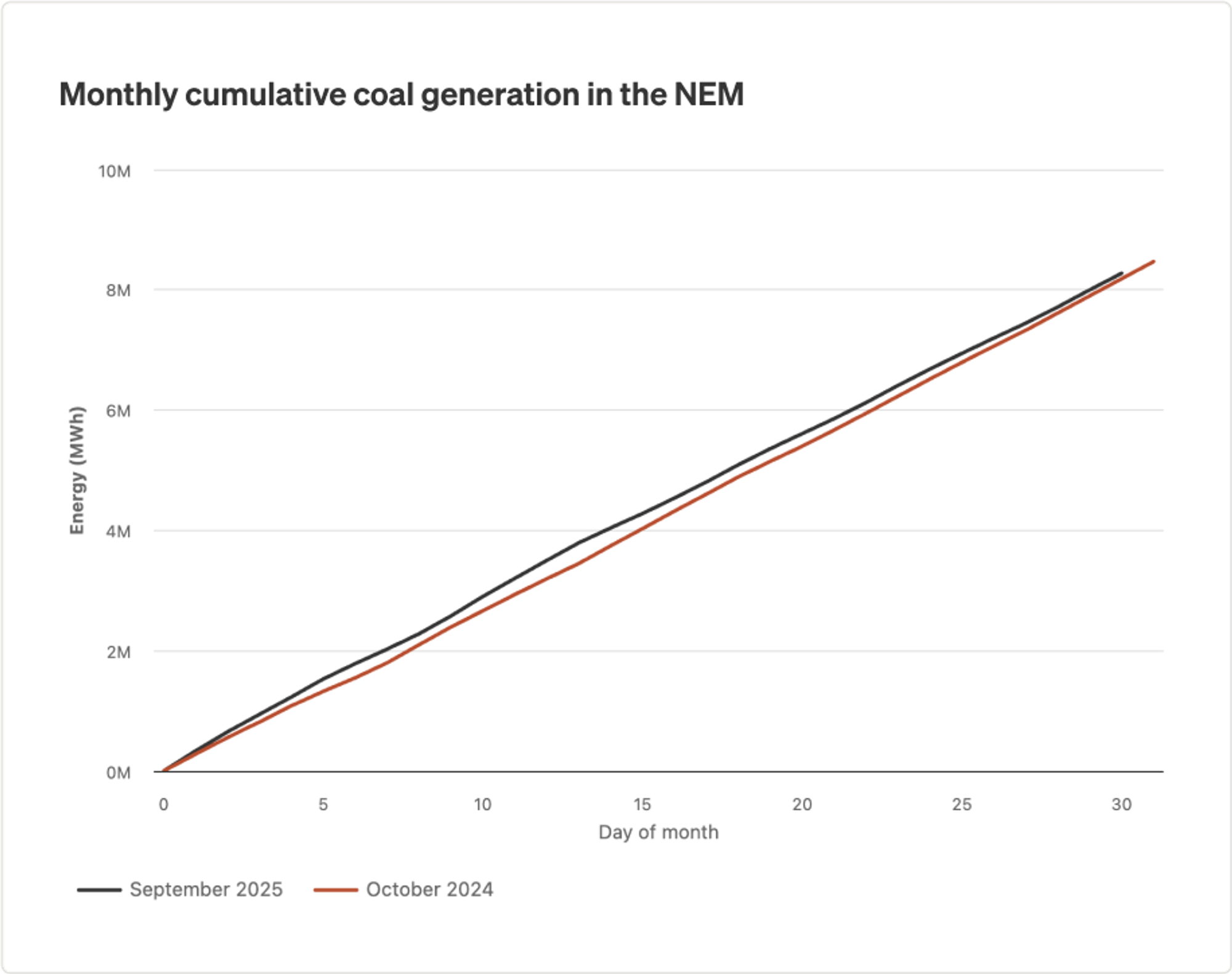 Meanwhile, coal generation in Victoria totalled just 1977GWh for the month, nearly 8% below the previous low in October 2024.